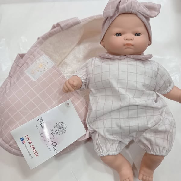 Boneca perfumada com corpo de pano, cabeça e membros em borracha macia e perfumada.